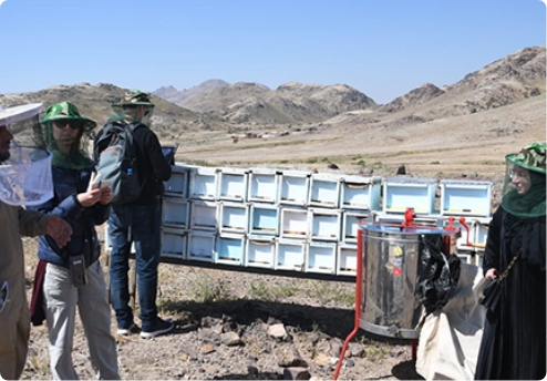 - التلقيح وزيادة الإنتاج الزراعي: حيث يقوم المدربين المختصين بتعليم المشتركين كل مايتعلق بالنحل وكيفية انه يحتل دور حاسم في عملية التلقيح، يقوم بنقل حبوب اللقاح من زهرة إلى أخرى، مما يساعد على إنتاج الفواكه والخضروات. كما يُقدر أن حوالي 70% من المحاصيل الزراعية تعتمد بشكل كبير على التلقيح بواسطة النحل.