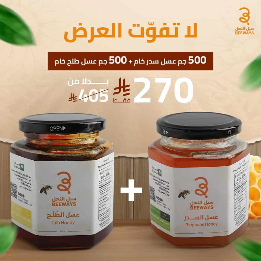 هل تبحث عن نقاء الطبيعة في كل قطرة عسل؟ نقدم لك عروض عسل السدر وعسل الطلح الخام، كنز من خيرات الجبال، نقي وطبيعي 100%، غني بالقيمة الغذائية والطاقة التي يحتاجها جسمك كل يوم.